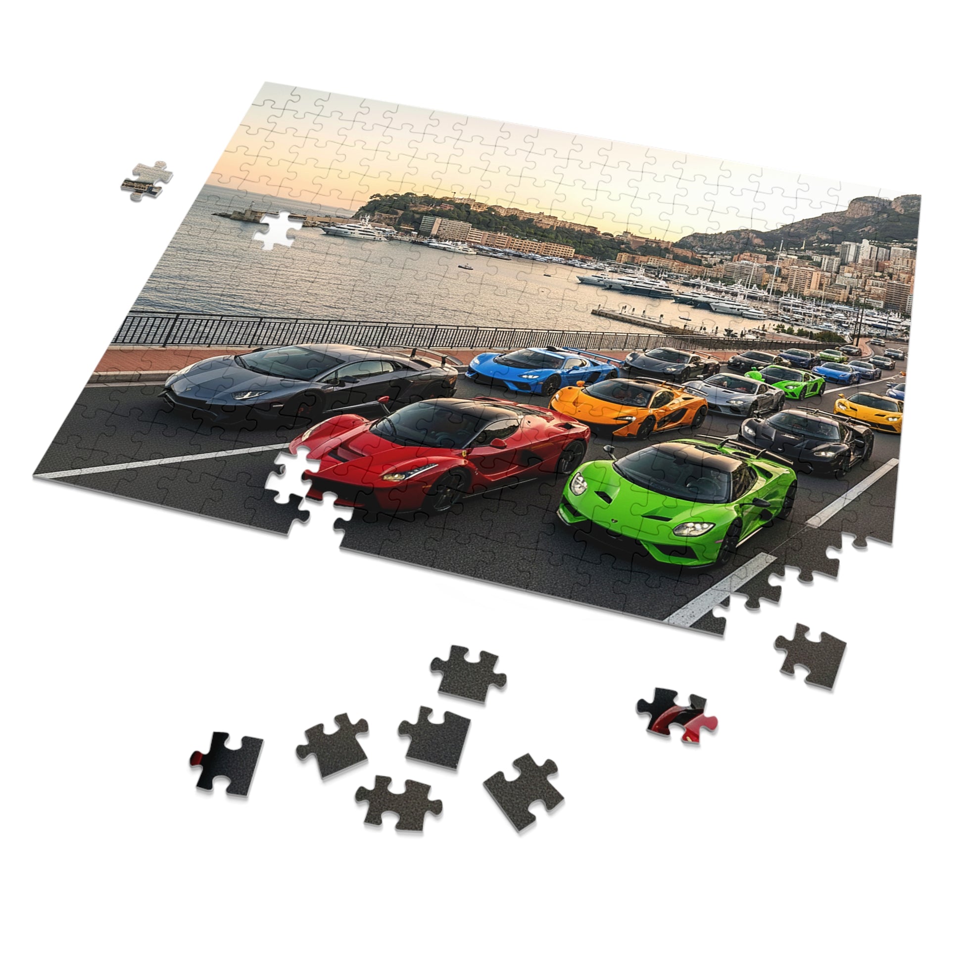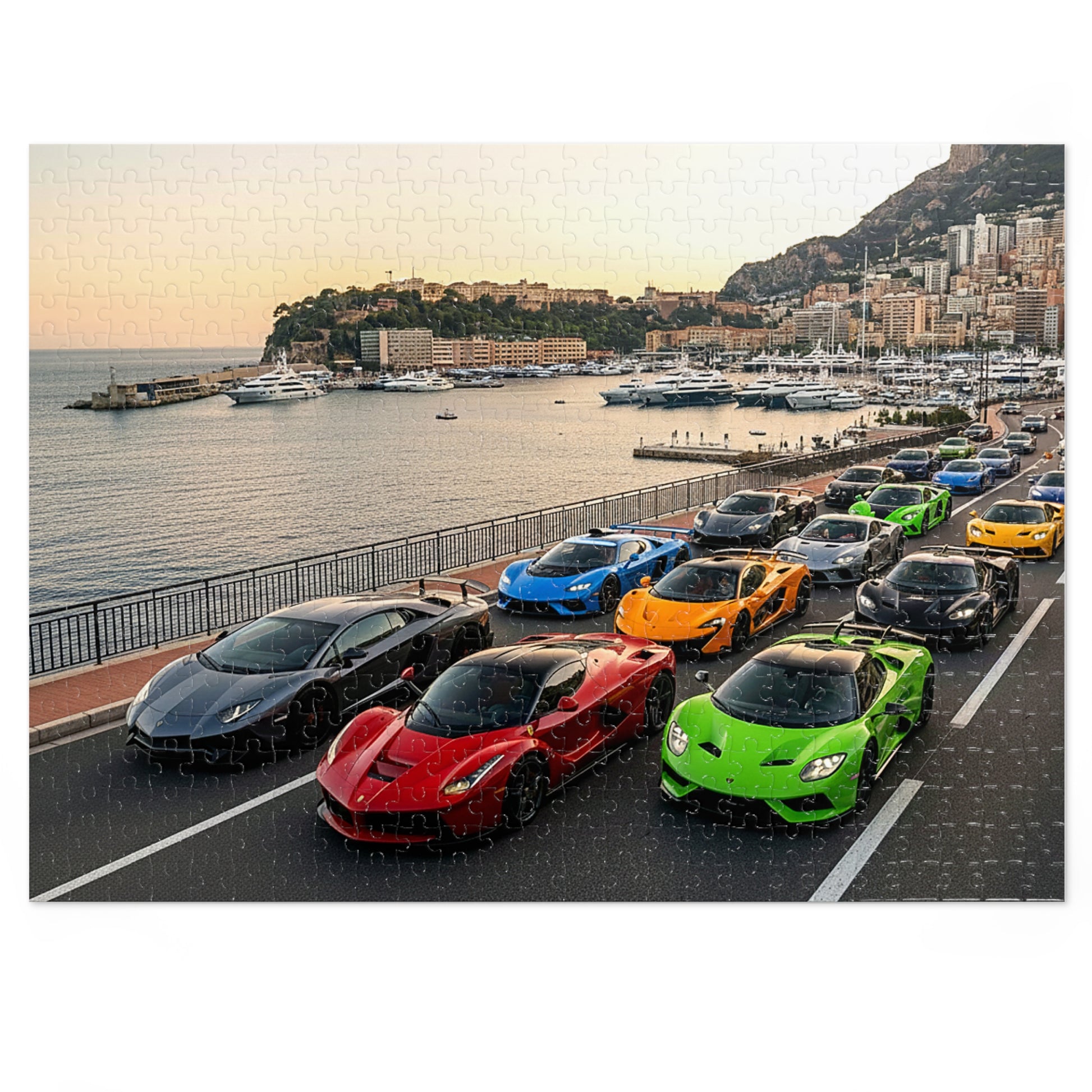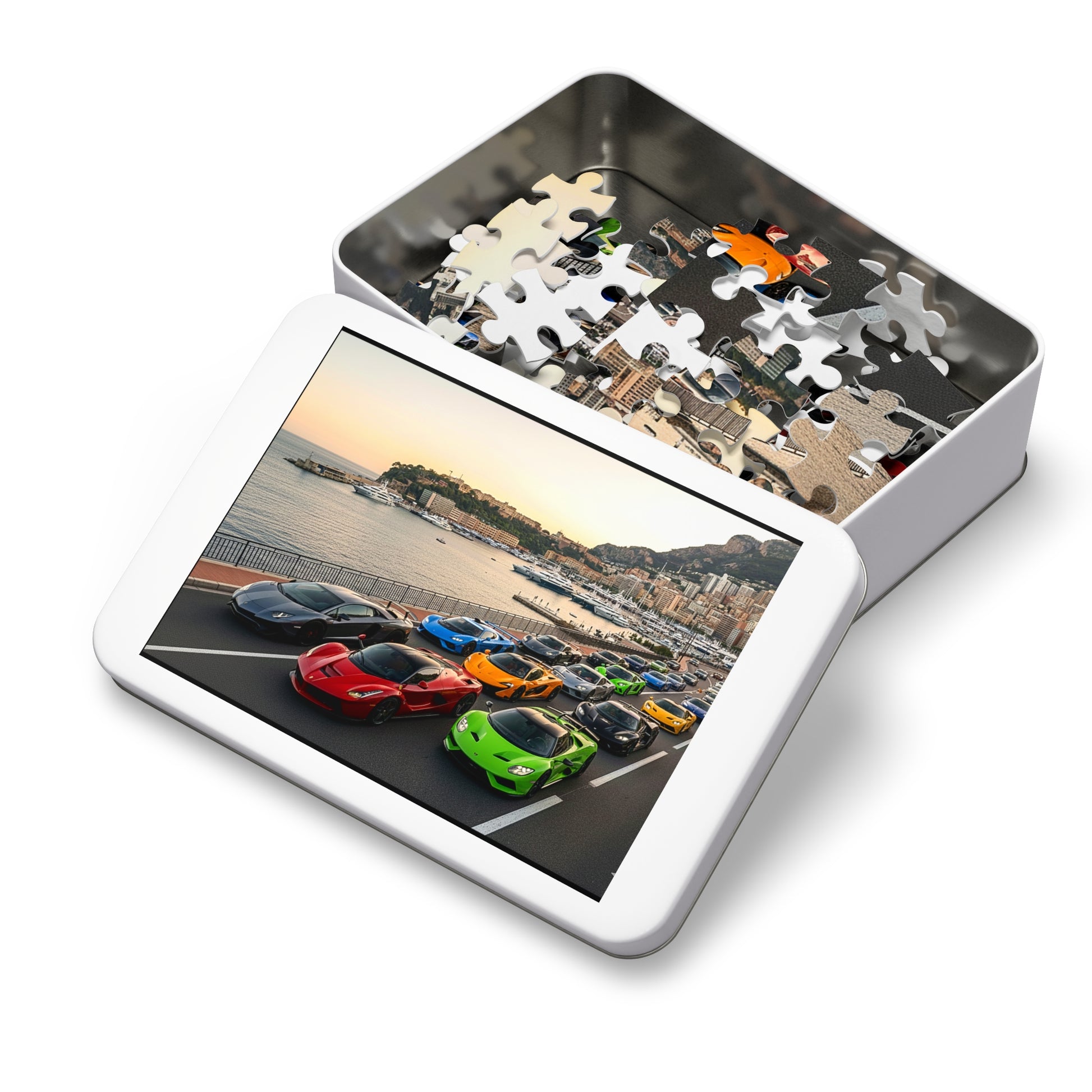 Luxury Sports Cars Jigsaw Puzzle (Tin Gift Box) — Colorful Supercar Parade in Monaco